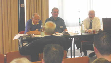 The 2004 AGM. (l to r) Alan Moore (Treasurer), James Watling (Chairman) and Derek 'Lew' Lewis (Secretary).