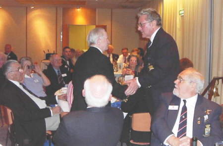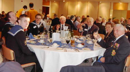 The reunion dinner with members of the current HMS. Vengeance ship's company. Eric Rayner (1850 Sqdn.) far right.