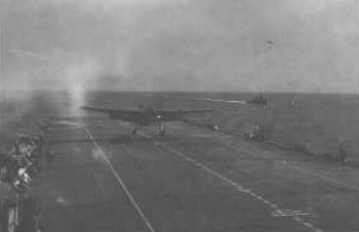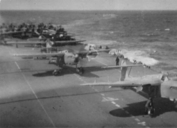 En-route to Malta, 16th March 1945. C.O. Coxon takes off to lead a 'dummy' attack on the Fleet.