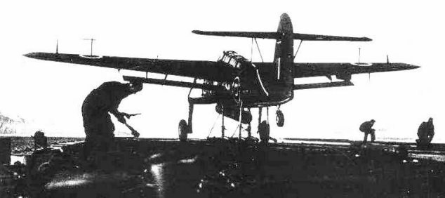 Barracuda preparing for Assisted Take Off (ATO) HMS. Vengeance.
