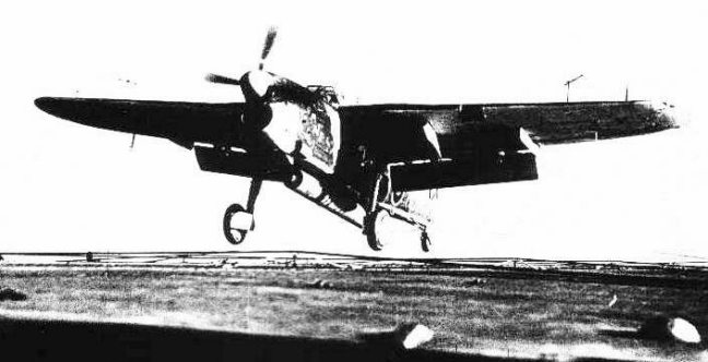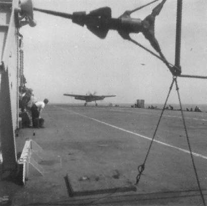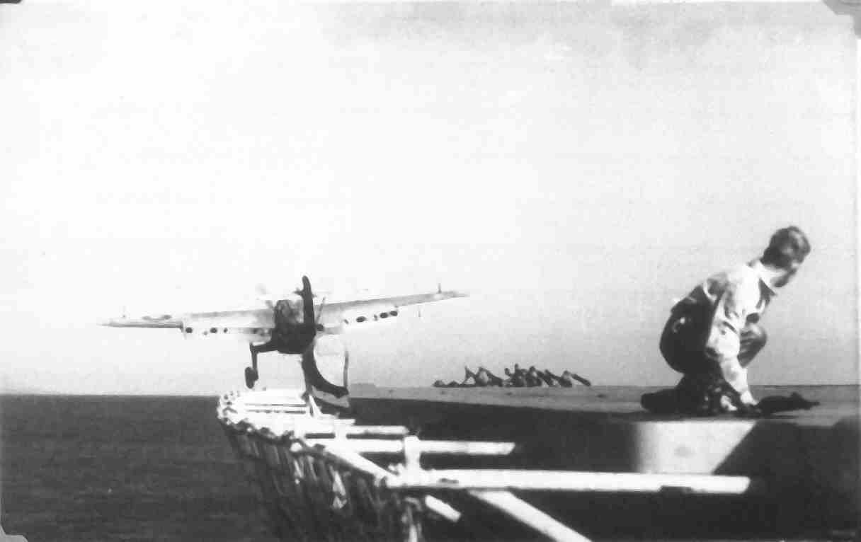 S/L. J. Dickson landing on HMS. Vengeance, 10th May 1945.