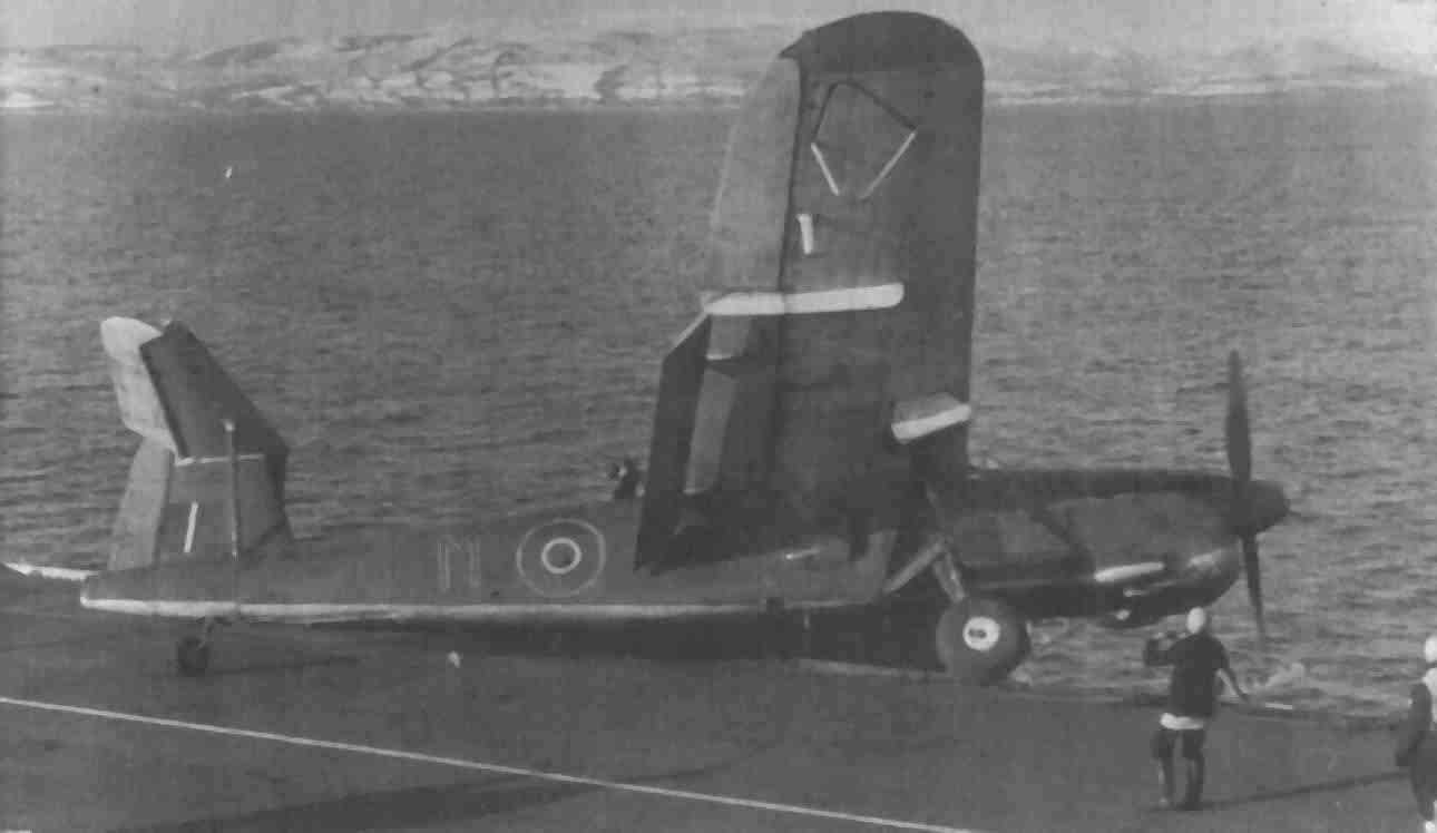 Barracuda lies dangerously over the side, off Gibraltar 1945.