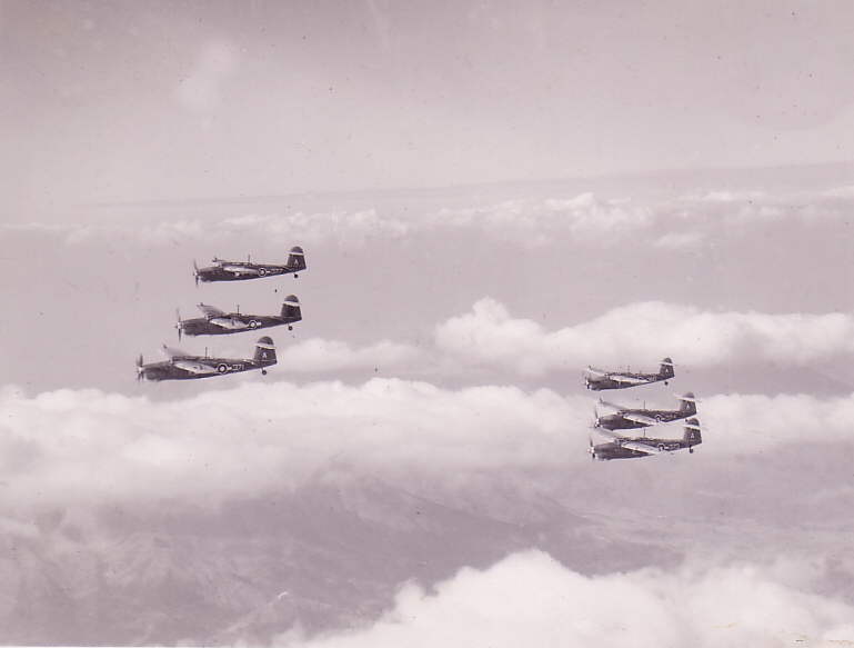 Barracuda's from 812 Squadron, HMS. Vengeance in formation.