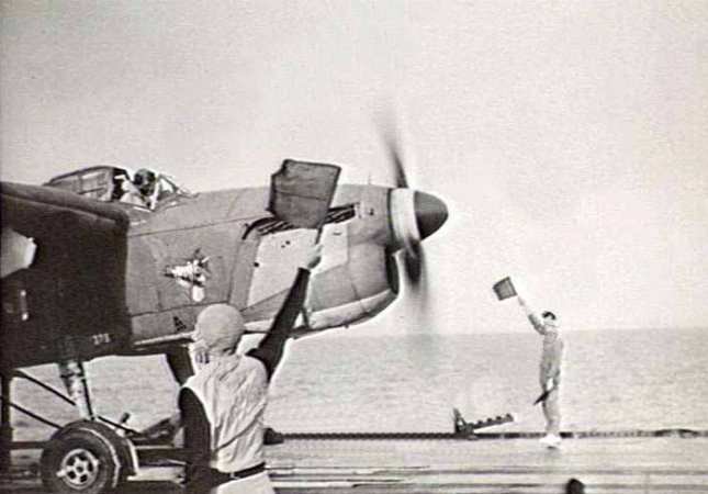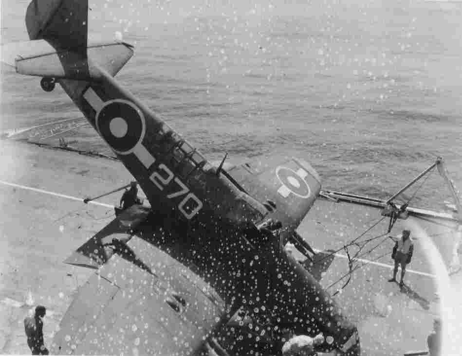 The first Firefly crash. S/L. J. Cookson misses all the wires and into the barrier, on the 19th March 1946, off Sydney, Australia.