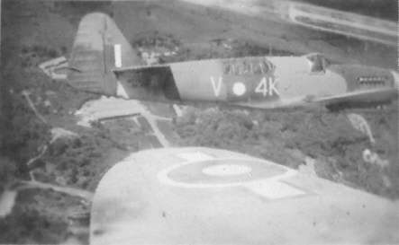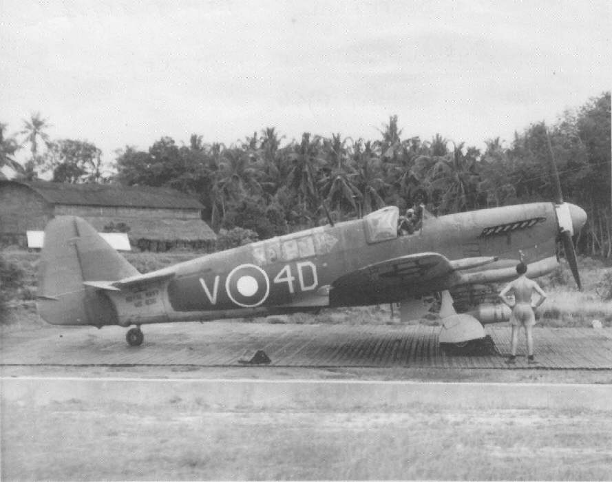 Squadron dispersal at HMS. Ukussa, RNAS. Katukurunda, Ceylon in May 1946. Firefly V4D (MB 636). Pilot S/L. J. Dickson.