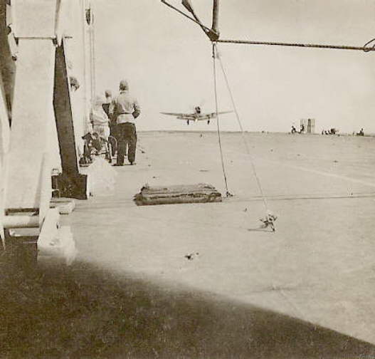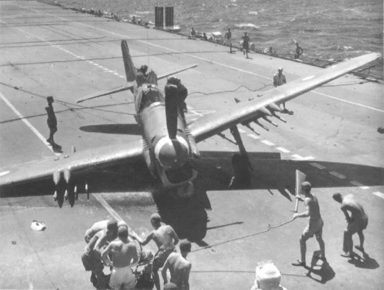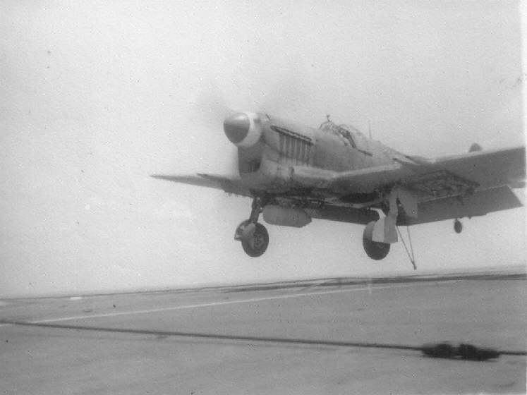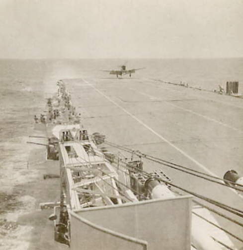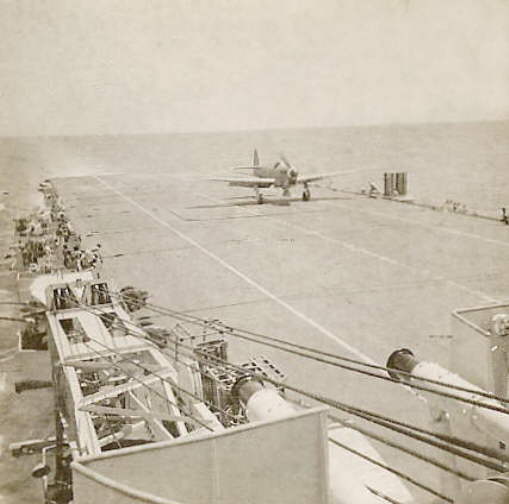 S/L. Tom Stride landing on HMS. Vengeance in July 1946.