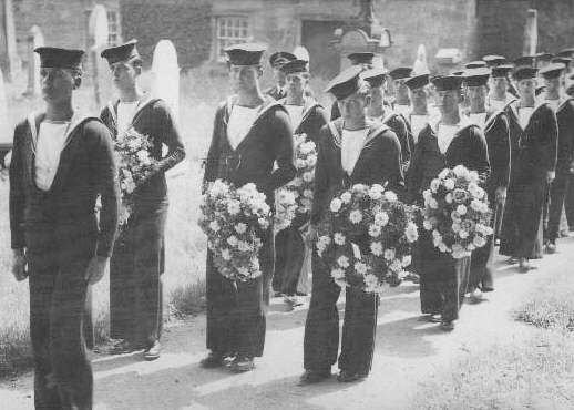 Funeral procession and wreath carriers from 812 Squadron.
