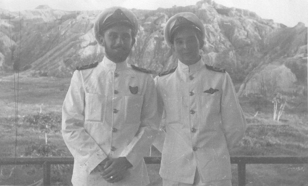 Observer Bill Williams and Pilot John Dickson at Kowloon, Hong Kong in 1945.