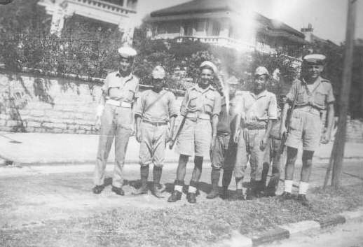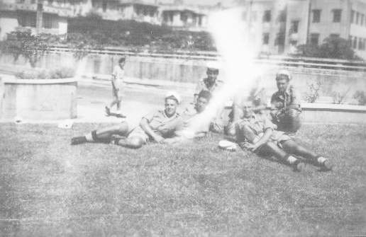 Taking it easy outside Kowloon Flats, Hong Kong in 1945. Persons unknown.