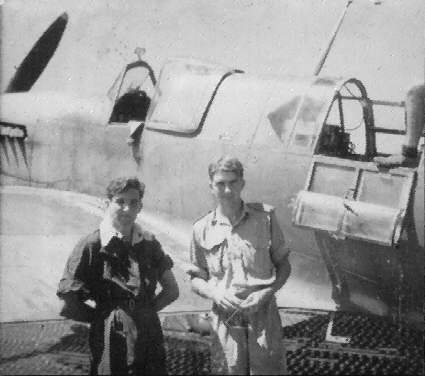 Sub. Lt. Leslie Robinson (left). Observer unknown. Photo possibly taken at HMS. Ukussa, RNAS. Katukutrunda, Ceylon between the 7th April and 14th July 1946.