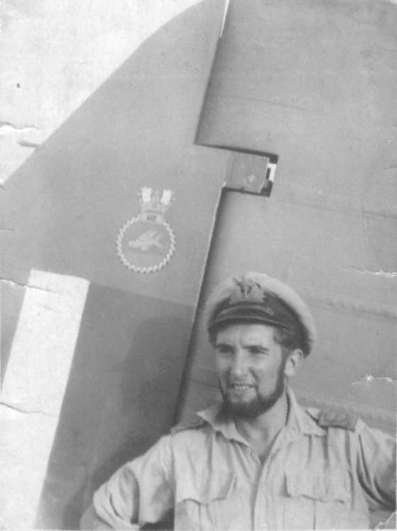 S/L. J. Dickson with a Firefly FR.1 on HMS. Vengeance in July 1946. 812 Squadron Crest on tail of aircraft.