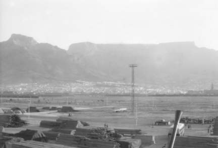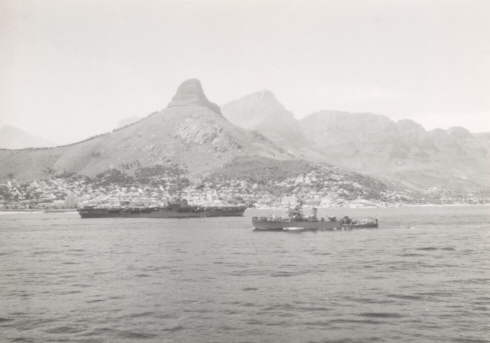 HMS. Vengeance in South Africa. Table mountain in the background.