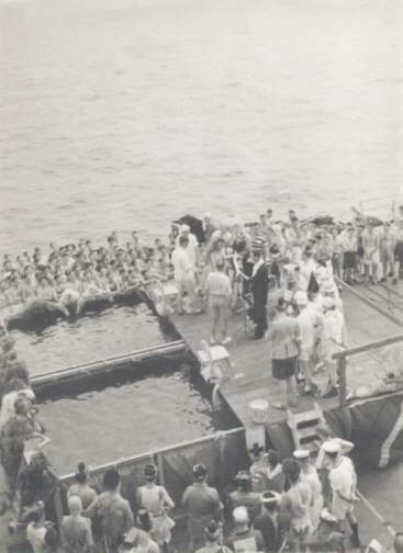 At Portland, prior to sailing for Africa on 23rd September 1948. Captain Terry 5th (l to r).