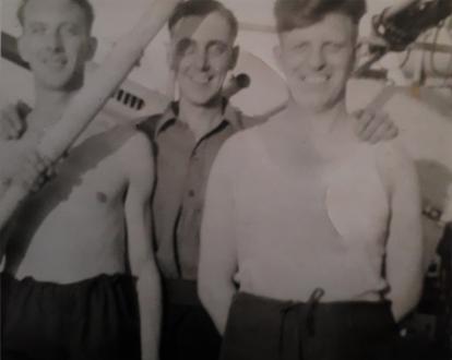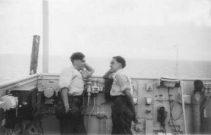 Alan Ashworth (Signals) (left) aboard HMS. Vengeance in 1948.