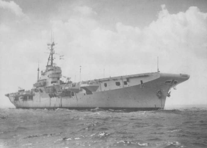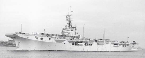 HMS. Vengeance in 1948, anchored outside East London Port.