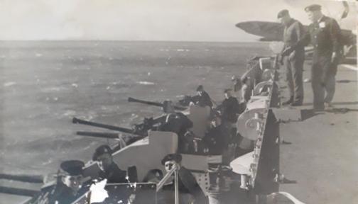 Royal Marines working on the Anti-Aircraft Guns HMS. Vengeance.