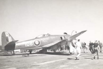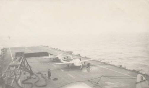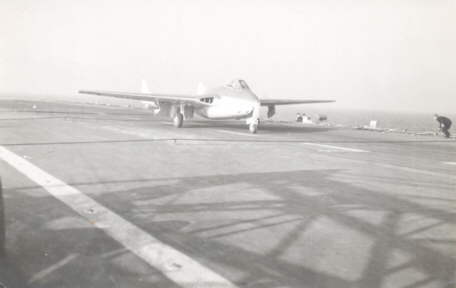 A Sea Vampire on the deck of HMS. Vengeance.