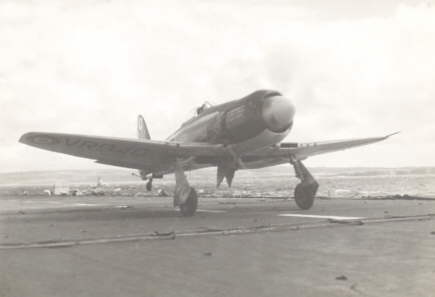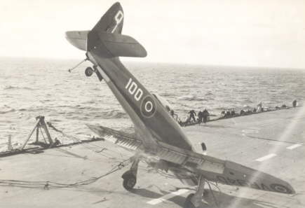 A Sea Fury (Q/100 - VR940) becomes another victim of the barrier.