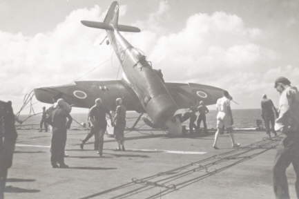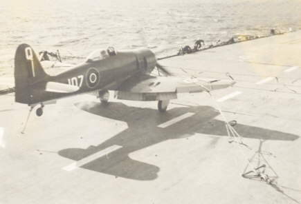Sea Fury landing on HMS. Vengeance.