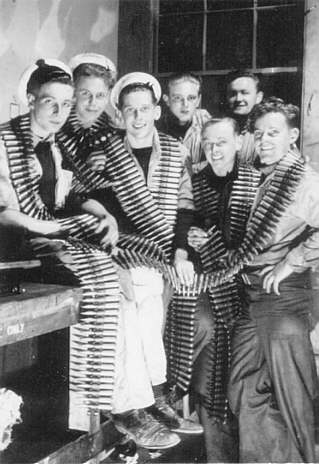 Armoury section NAS. Brunswick, USA. 'Lofty' Edwards, 'Yank' Barlow, Harry Davies, Ken Braham, Ken Hall, 'Coles' and Keith Bennett.