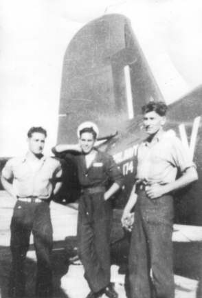 The crew of '5V10' (KD 174). Air Mechanic (E) Ken Reid (left).