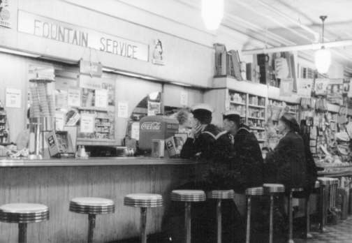 Royal Navy ratings take a break for a coffee in Brunswick, Maine, USA.