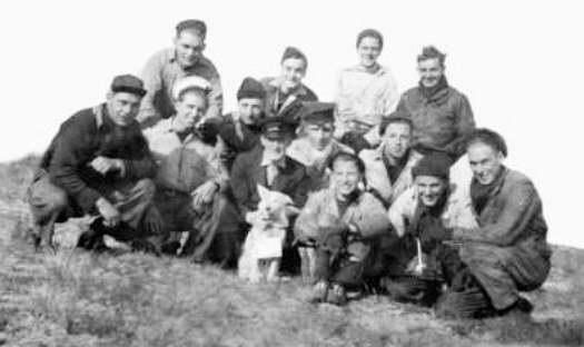 Fitter Maurice Satchell (1st l to r), Air Fitter (E) Leslie Phillips (3rd l to r) in Brunswick, Maine in 1944. Others unknown.