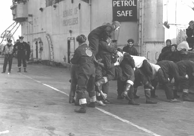 The flight deck party, HMS. Vengeance in 1945, taking it easy.