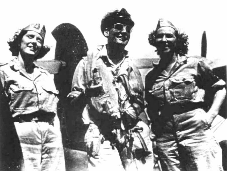 Pilot S/L. P. Hodgson (1850 Sqdn.) with QARNNS Sister A. Hippsley (left) and Nurse J. Walker (right) aboard HMS. Vengeance en-route from Leyte to Hong Kong, between the 2nd & 5th of September 1945.