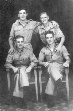 1850 Squadron personnel, taken at Kowloon City, Hong Kong in November 1945. (Back row l to r): Bob Conway, L.T. Gould. (Seated l to r): Ken Braham, Ken Reid.