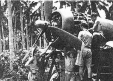1850 Squadron personnel with Corsair at HMS. Ukussa, RNAS. Katukurunda, Ceylon between April and June 1946. 'Pop' Ellison with back to camera, other persons unknown.