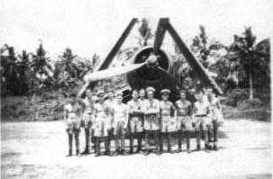 1850 Squadron personnel, with Corsair at HMS. Ukussa, RNAS. Katukurunda, Ceylon between April and June 1946. Persons unknown.