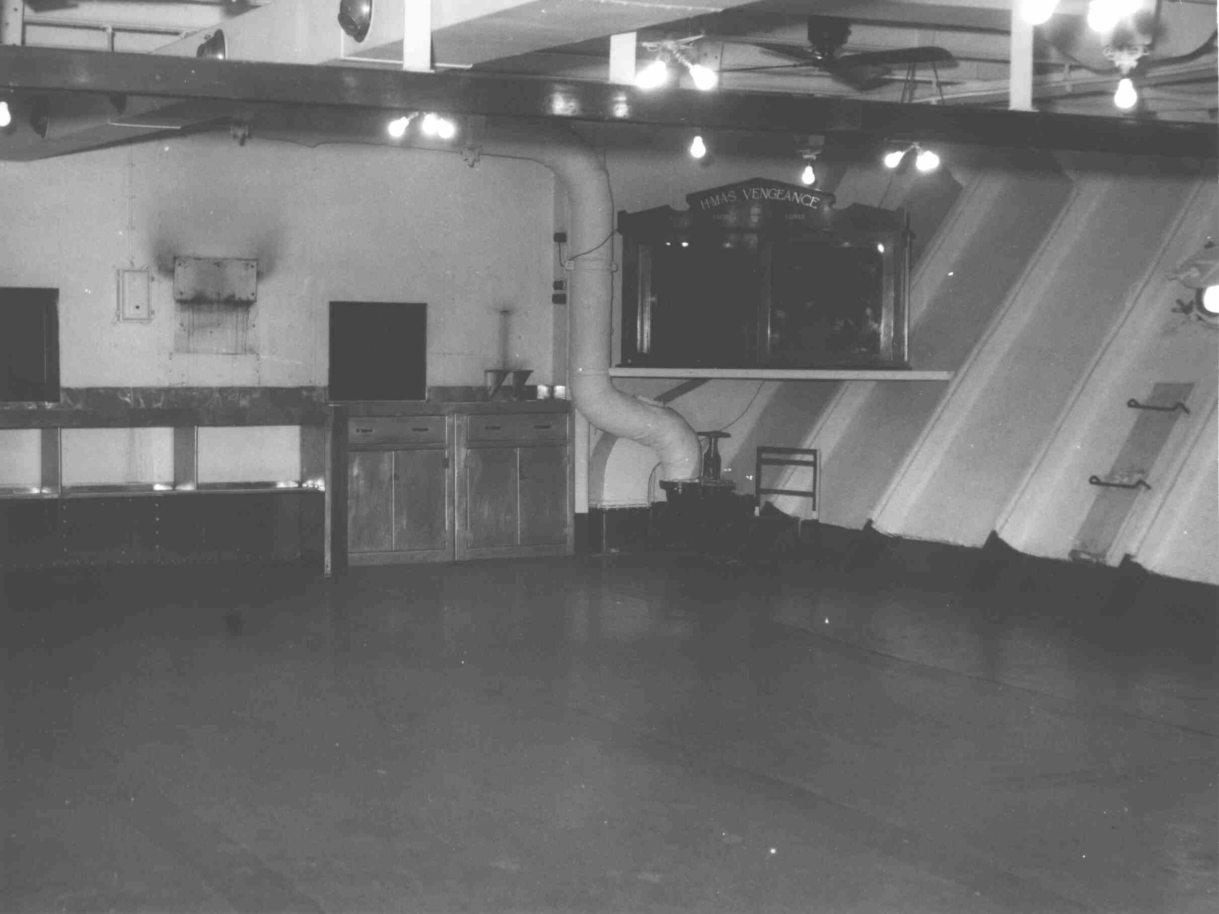 Interior mess deck of HMAS. Vengeance (details or mess deck unknown).