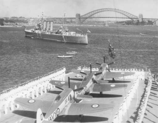 The carrier sailed to Australia arriving on 16th July 1945, at Fremantle, then on to Jervis Bay and Sydney. She departed Sydney on VJ Day, the 15th August 1945. She returned the following year, bringing Australian troops home from Labuan in Borneo to Sydney, arriving on the 12th January 1946. She under went a refit in Sydney and departed again on 19th March 1946.
