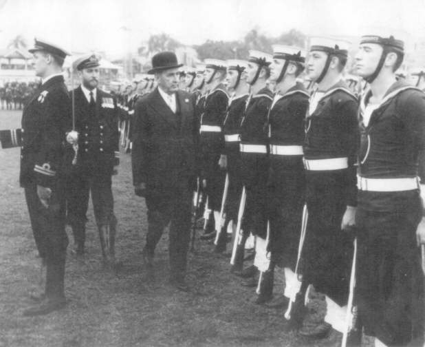 Guard of honour for the Governor of Queensland in 1954. Leading Seaman Robin Pasco (4th from right).