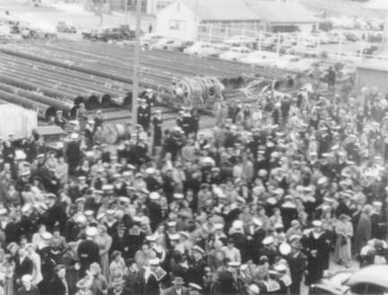 Garden Island naval dockyard on 16th June 1955 as sailors prepare to depart for the U.K.