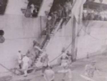 Home at last. The Australian Troops disembark from HMS. Vengeance on 12th January 1946.
