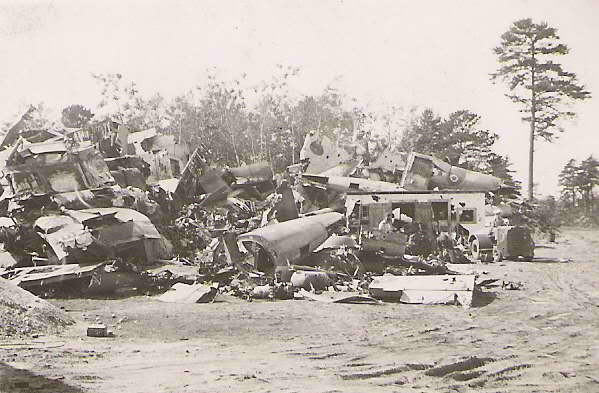 The scrap yard at USNAS. Brunswick (HMS. Saker).
