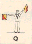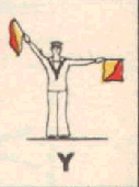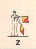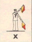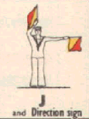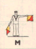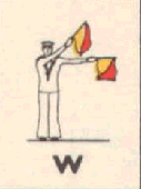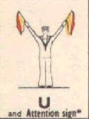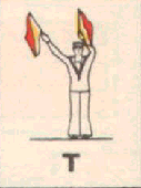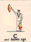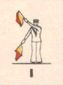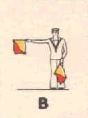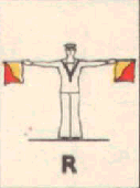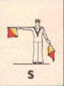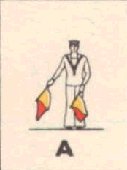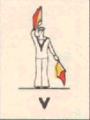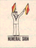 Provides a rapid means of passing messages over short distances during daylight. The sender must always stand in a conspicuous position, choosing a plain, light background, the best of which is the skyline. The different semaphore signs are made by moving one or two flags, held by hand, so that they form various angles. It is essential that each angle be formed correctly and it is better to transmit slowly, as undue hurry in forming the letters will result in bad transmission and mistakes. Good communication depends on accuracy. The simplest method of remembering the signs, is to take them in a series of circles. 1st Circle: A to G (single arm signs). 2nd Circle: H to N (omitting 'J'). 3rd Circle: O to S. 4th Circle: T, U, Y. 5th Circle: Numeral sign, J and V. To complete: W, X, and Z. It should be noted that there are no special signs for numerals, which are always spelt out. The 'numeral sign' is used to indicate that the numeral(s) that will follow, are to be recorded as digits.