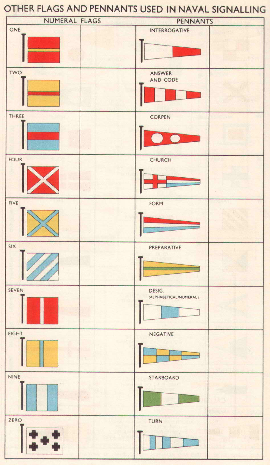 This involves the use of flags and pennants displayed from 'halyards' and is employed by ships and shore establishments and is limited to daylight use and comparatively short distances. The flags and pennants used in Naval signalling comprise of: Alphabetical flags, Numeral pennants and Substitutes, Numerical flags, Special flags, Special pennants and Fourth substitute (Fig: 1 and 2).