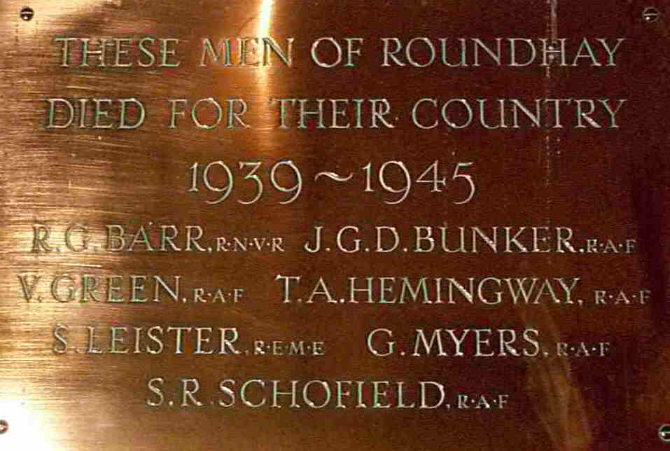 Brass plaque at St. John's Church, Roundhay, Leeds, England. (Names list incomplete)