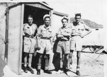 Taken, presumably in Australia, date not known. Possibly 'Geordie' Spoors*, E. Packer * or 'Yorkie'*?. Dad on right. (*Searching for)