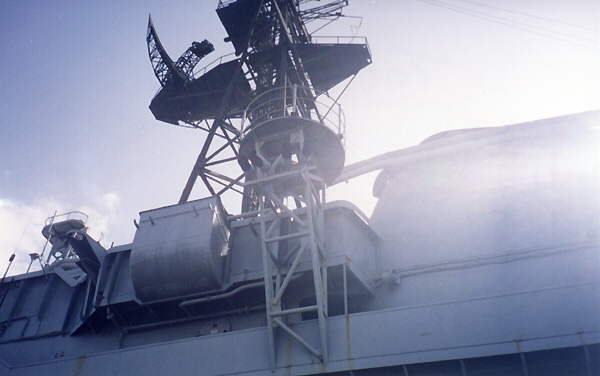 Radar mast, from port side of island.