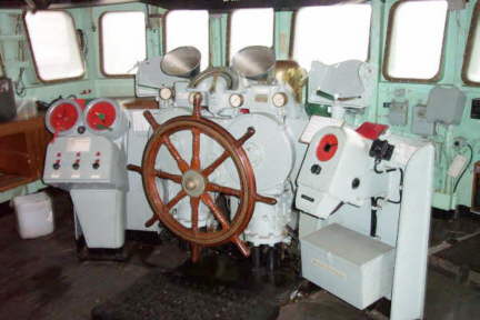 The bridge, ships wheel and steering gear in situ, before breaking.