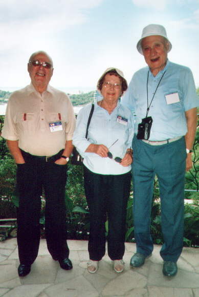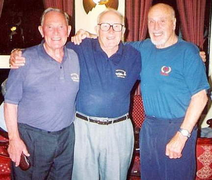 (Left to right): Derrick Brook (O), John Dickson (P) and Geoff Squire (TAG) at the Crowne Plaza Hotel, Malta on 2nd October 2005, during the Malta Veteran's Reunion Week - 2005. This unique trio are possibly one of the very few complete aircrews left today, which served together during WWII.