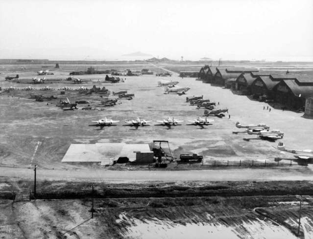 Aerial approach to Iwakuni Airfield, Kure, Japan.