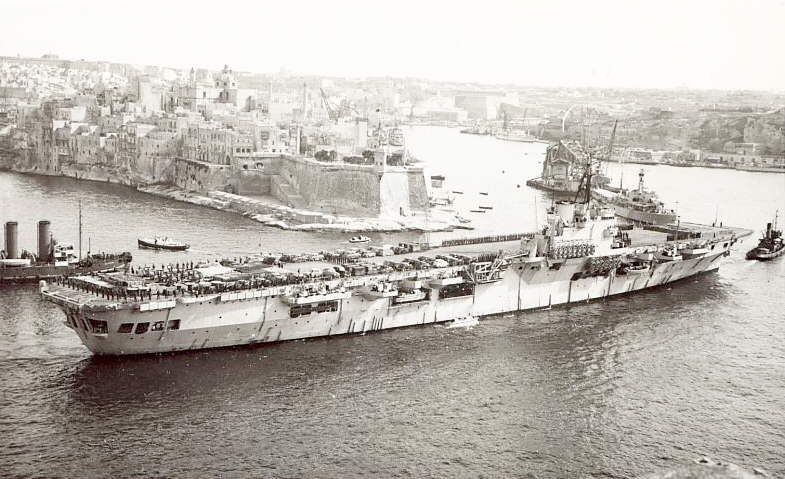 HMS. Vengeance entering Grand Harbour, Malta on 19th March 1952.