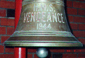 It is estimated, that the ship's bell from H.M.S. Vengeance, has been missing for approximately 48 years, although this cannot be confirmed, however, it is assumed, that the bell disappeared, when H.M.S. Vengeance was loaned to the Royal Australian Navy on the 13th November 1952. I personally, have no knowledge if the bell was still on H.M.S. Vengeance, when she was returned to the Royal Navy on the 13th August 1955, unless you know different.......in which case, please let us know.