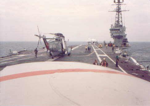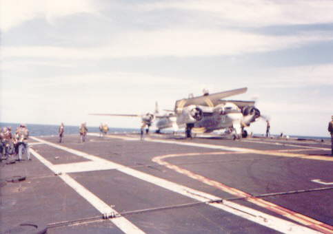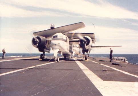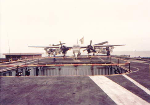 This photo was taken from the P-16īs radar operator hatch and shows the full length of the flight deck from aft, looking forward. The red stripe marks and warns of the revolving propeller.