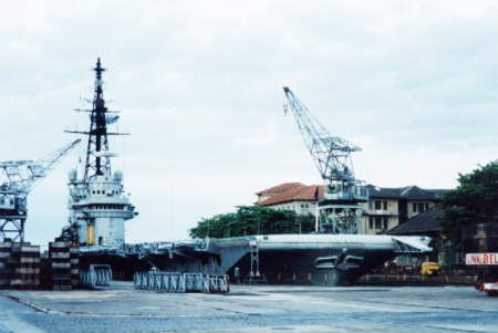 Minas Gerais in dry dock at Arsenal de Marinha, Rio de Janeiro, Brazil in 2000.